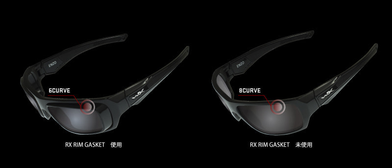 WX ENZO-RIM-には画期的なレンズ交換方式を採用したRX RIMシステムが実装されている。このシステムは8ベースカーブのフレームに6ベースカーブのRX RIMガスケットを装着するもので、容易なレンズ交換が可能なことやFACIAL CAVITY™ガスケットを装着しなくとも耐衝撃時にレンズが眼球を圧迫しないという利点の他、8ベースカーブの度付きレンズよりも幅広い製作範囲の度付きレンズに対応できるという特徴がある。これはレンズ特性が異なる複数の度付きレンズを状況に合せてクイックチェンジができることを意味しており、眼鏡着用者が光学的なアドバンテージを得ることができる。